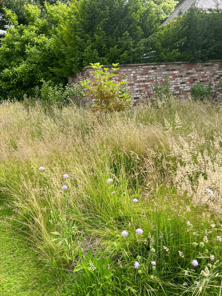 We took the ecological principles of 'woodmeadows', which are ancient and extremely biodiverse habitats still found in parts of Eastern Europe, and applied those principles on a garden scale. As the name suggests, woodmeadows are an evolving mosaic of woodland and meadow at varying stages of maturity. They were created by early human settlers who cleared patches of woodland for hay meadows and livestock grazing, coppicing the regenerating woodland on rotation for building and firewood. This system has produced some of the most biodiverse landscapes on earth.