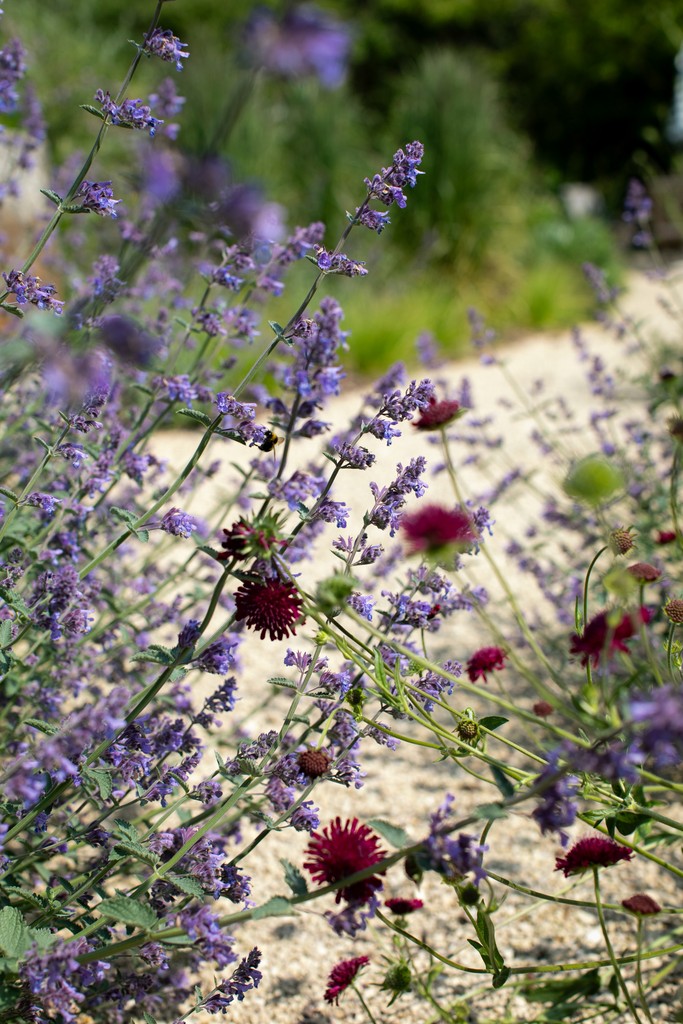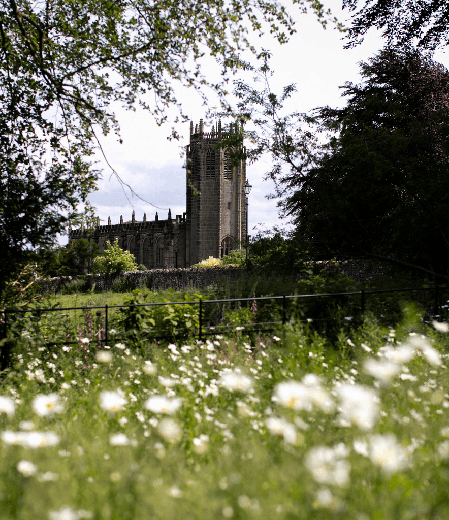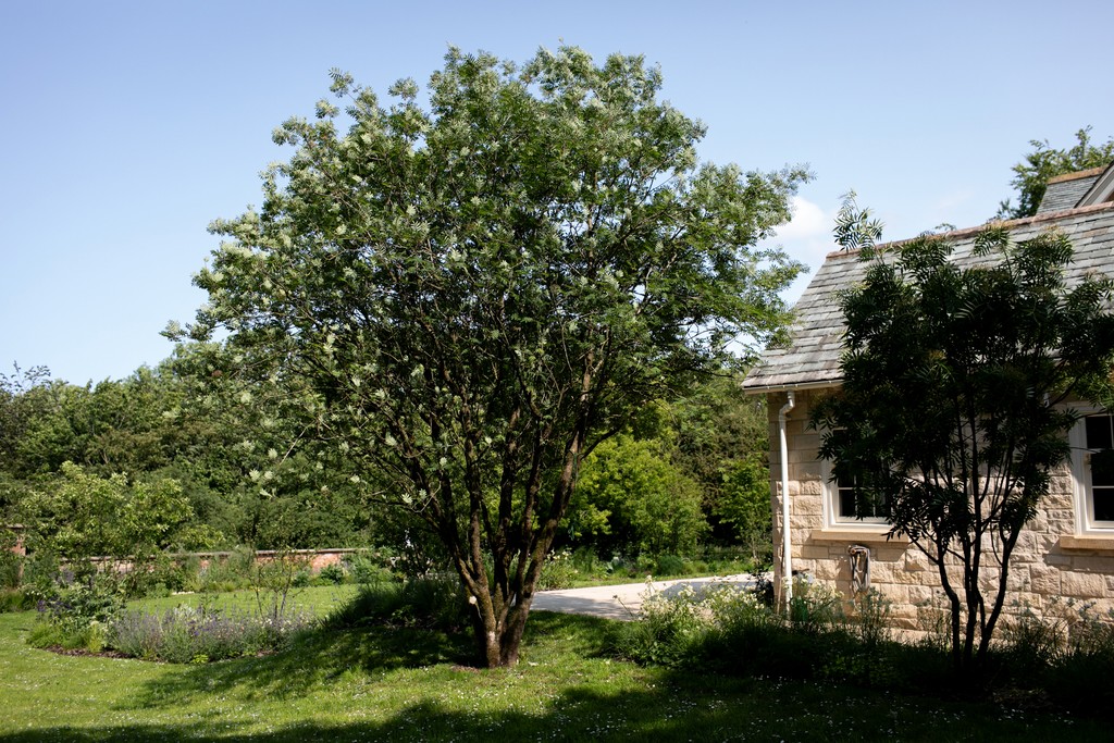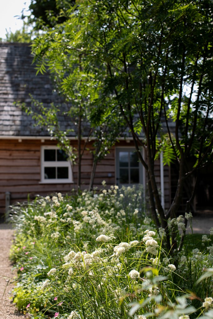 In the front garden we designed a gravel driveway bounded by yorkstone cobbles, a herb garden against the South-facing wall, and we restored the small apple orchard by sowing a wildflower meadow and replacing the dead and dying trees with heritage varieties.