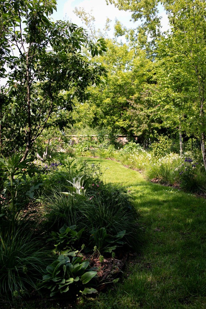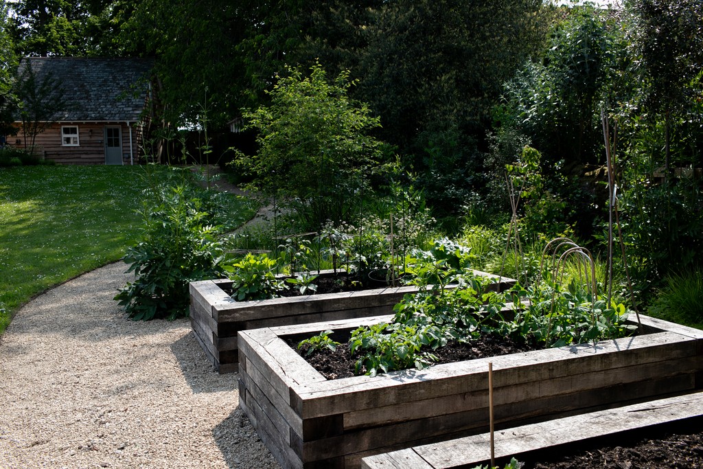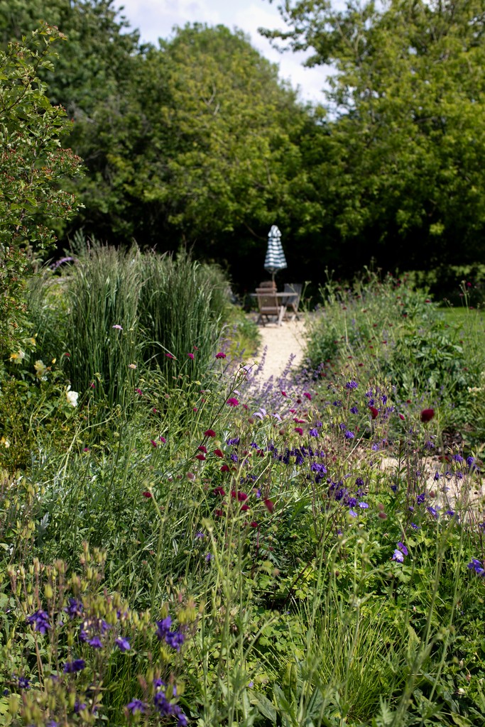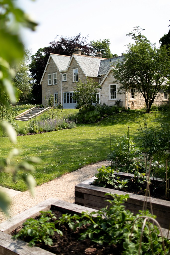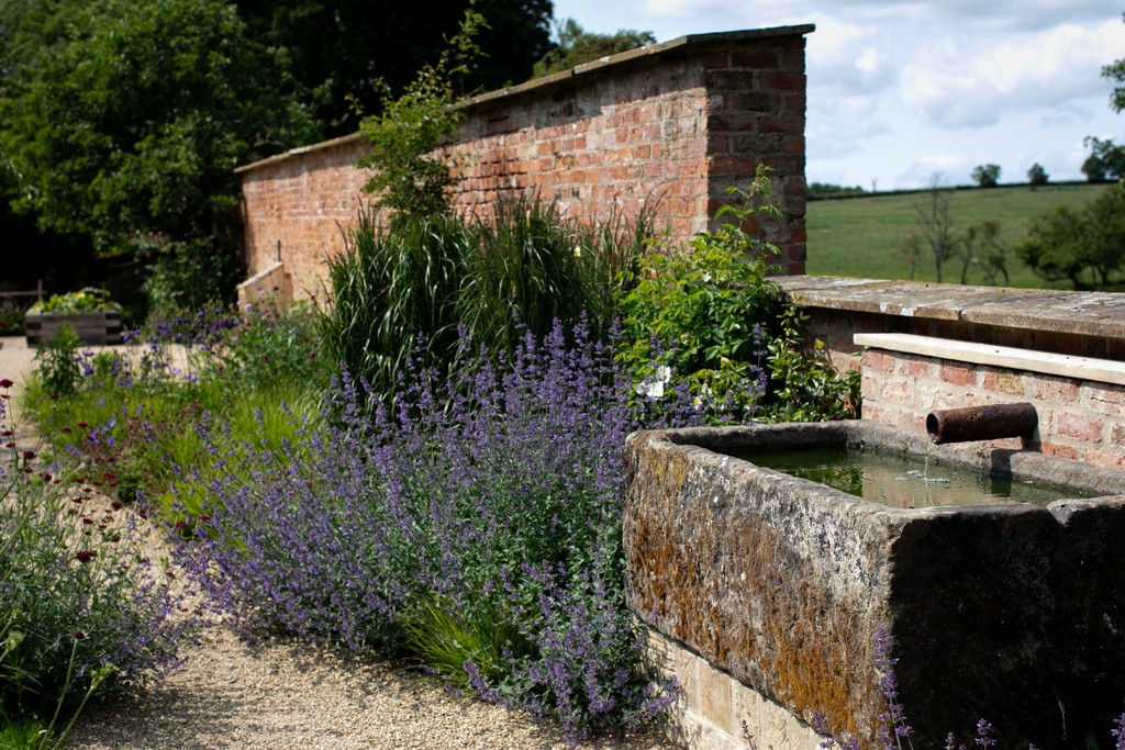 We incorporated a vegetable garden and a lightly concealed children's 'play lawn', and created a journey through the garden - taking in a woodland walk, prairie-style planting, native wildflower meadows, and a water feature crafted from a locally sourced stone trough - a link to the grazing pastures beyond the garden.
